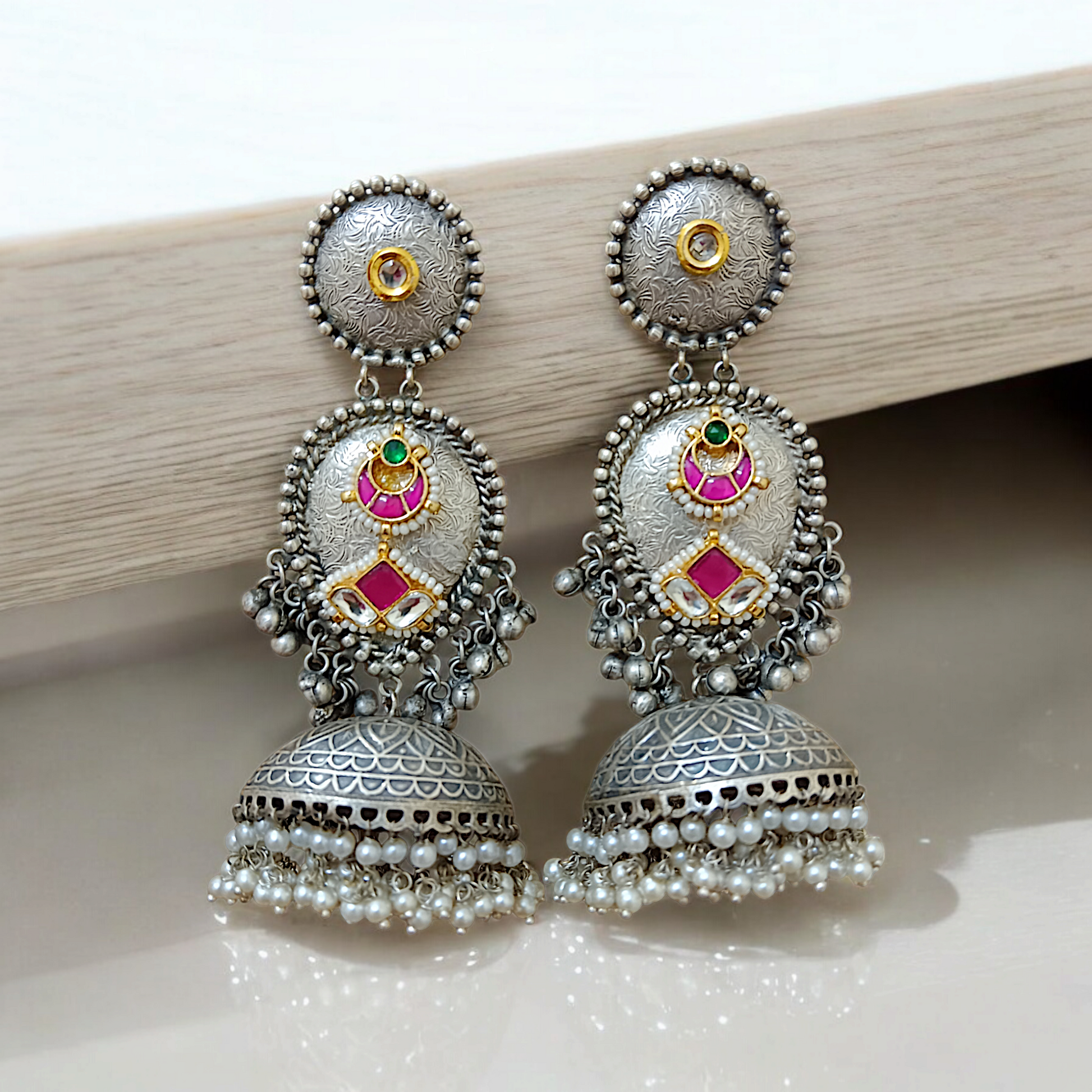 Silver Paachi Kundan Statement Long Jhumka